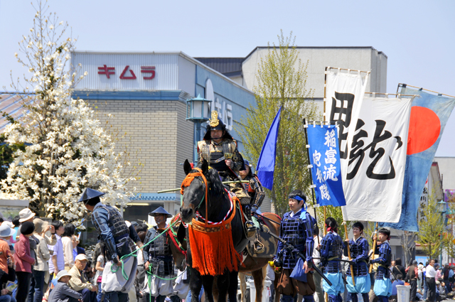 米沢市内にて、5月3日(金)9:30~12:30に総勢千数百人に及ぶ大パレードが繰り広げられる「上杉行列」、